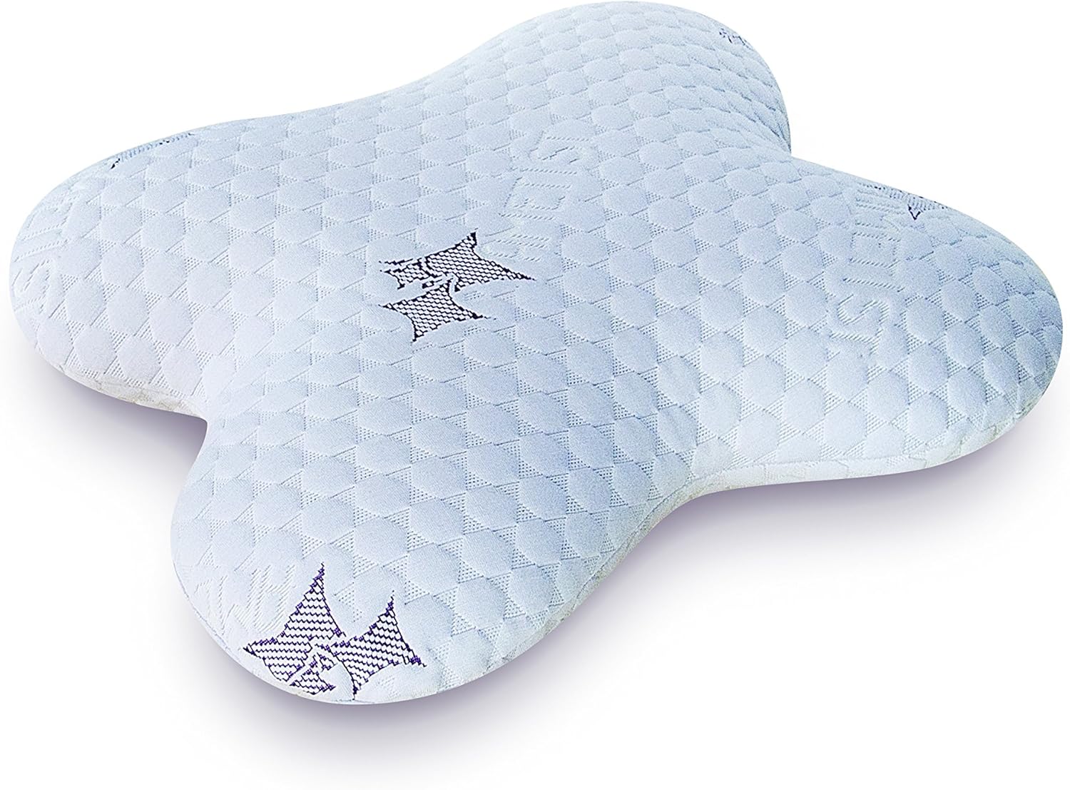Veľmi obľúbený tvar vankúša u všetkých, ktorí spia na bruchu a boku. Motýľový tvar optimálne zapadne a pamäťová pena vankúša sa ešte viac prispôsobí kontúram človeka pri ležaní na bruchu a boku. Napomáha uvoľneniu šije pri týchto polohách. Na dotyk veľmi príjemný poťah z polyesteru, odnímateľný a prateľný.