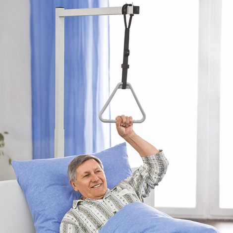Jednoduchá a stabilná pomôcka pre posadenie sa či posunutie na posteli. Vyzaduje urcity stupen spoluprace pacienta. Výrazne napomáha pri prebaľovaní, premiestnovani, posadeni či úprave postele. Montáž bez vŕtania a šrúb, jednoducho postaviť a hotovo.Bezproblemove zasunutie pod postel, vyska profilu len 5 cm. Nosnosť do 100kg.Výška 176 cm, základna 82,5 x 75,5 cm Otáčateľný držiak. Hmotnost: 13 kg